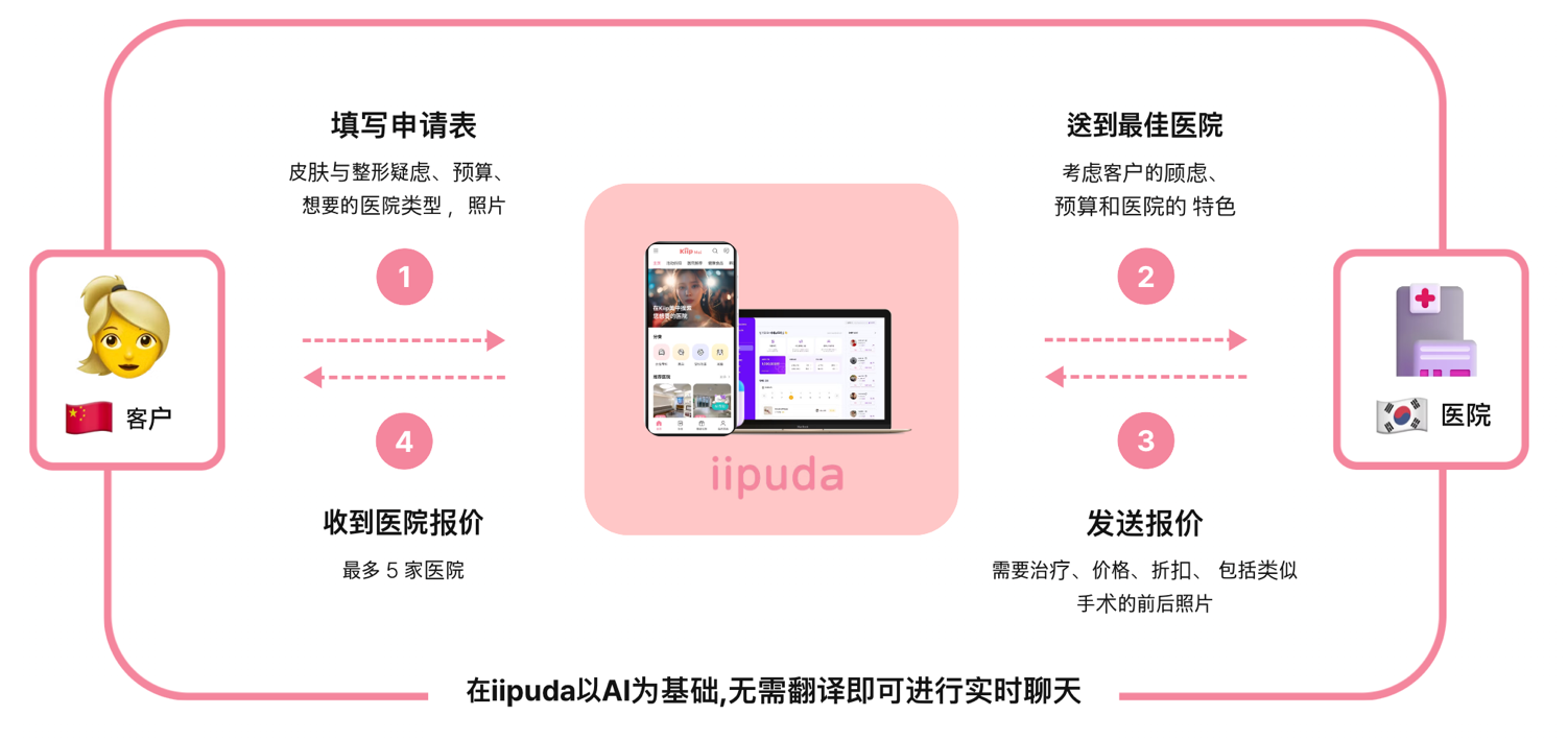 한국의 100군데 전문 피부과와 성형외과를 소개하는 새로운 서비스, "伊朴达(iipuda, 이뿌다)"가 중국에 진출했다.